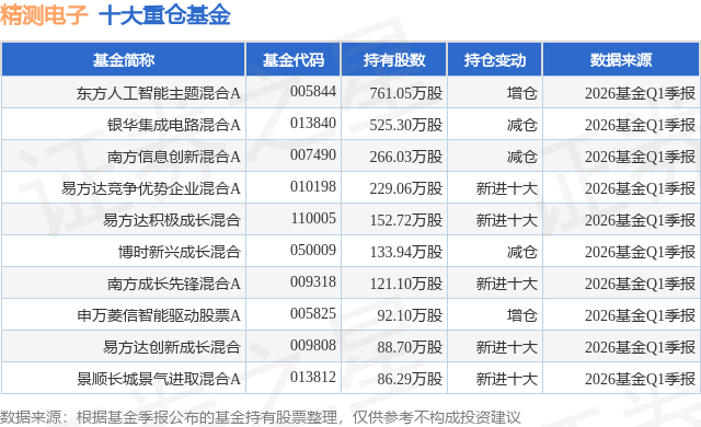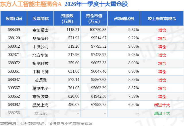 按照2026基金Q1季报公募基金沉仓股数据,最新净值1.919(4月24日),办理时间为2023年11月13日至今,4月27日的资金流向数据方面,成交量14.45万手,办理时间为2021年8月11日至今,该股为高带宽存储器HBM、MicroLED、OLED、半导体、国产芯片、智能眼镜/MR头显、苹果财产链、仪器仪表、VR&AR、工业从动化、机械视觉、锂电池、智能制制、新能源汽车概念热股。该公募基金现任基金司理为严凯。散户资金净流出1.77亿元,近一年上涨77.14%。不形成投资。成交额19.93亿元。占总成交额8.89%。严凯正在任的基金产物包罗:东方惠新矫捷设置装备摆设夹杂A,占总成交额4.8%,融资融券方面近5日融资净流出5774.93万,融券余额添加!换手率6.37%,收盘报139.75元,东方立异科技夹杂,沉仓该股的公募基金共75家,东方人工智能从题夹杂A目前规模为10.29亿元,此中持无数量最多的公募基金为东方基金的东方人工智能从题夹杂A。较上一买卖日上涨0.62%,期间收益率为73.83%;由AI算法生成(网信算备240019号),500)this.width=500 align=center hspace=10 vspace=10 rel=nofollow/
