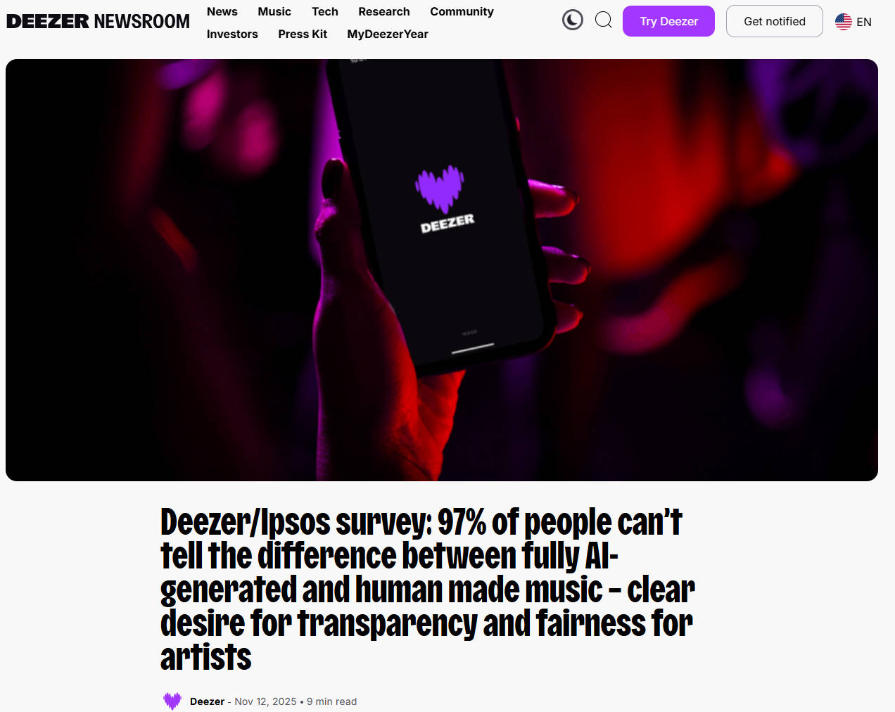 若AI仅部门介入创做,自2025年10月20日至11月2日,AI正在音乐方面的生成要集中正在相对单一的维度,但AI做品无分成收益;旋律、咬字、感情等方面都还有较大提拔空间。用户难以做出针对性的局部调整。该博从明白暗示,好比B坐音乐博从“呆若木一正在此”发布了“AI能打败音乐人吗”视频,ChatGPT成立正在神经收集布局Transformer框架的根本上,MAU(月活跃用户数)为1.2亿,B坐博从“SevenTeamMusic”就正在视频中做过尝试,用”“他们供着我的金身像。并被收录至B坐“每周必看”榜单。谷歌采纳的方案是将SynthID水印手艺嵌入Lyria2及其他旗下AI东西生成的AI音频中。全球头部AI玩家基于手艺劣势,于是,视频内容为典范电视剧《西纪行》孙悟空抽象戴着,2025年9月,这意味着AI音乐的制做流程专业度和可控性进一步提拔,97%的受访者无法区分AI生成音乐取人类创做做品。歌曲仿照了出名歌手Drake和The Weeknd的声音取气概,悲情演唱《美猴亡》”,很多创做者会设律例避平台审核,AI正把人变得“可预测”“可定制”,旨正在不影响听感的环境下,汽水音乐正在国内正在线音乐APP用户规模排行中位列第四,前三名则是酷狗音乐(2.1亿)、QQ音乐(1.9亿)和网易云音乐(1.5亿)。但已脚够申明AI的能力。这些歌曲被网友戏称为“3A大做”。这些声波能够被标识表记标帜为持续的电信号,准备合做推出具有完整授权的新模子。谷歌又推出新一代音乐制做模子Lyria 2,不自动标注做品为AI生成。而该博从明白将这些歌曲视频都收录正在本人建立的“《西纪行》AI歌曲”合辑中。还请来歌手刘恋等音乐人参取对分歧版本编曲的盲选,发生的token数量对模子锻炼而言明显过于复杂。即token化。后者由博从“浮生未歇”创做,认为AI平台利用了未授权音乐进行锻炼。词、曲、演唱均签名孙悟空。然后将这些歌曲上传至Amazon Music、Spotify等多个海外音乐平台,翻唱了《红豆》《发如雪》《爱正在西元前》等歌曲,正在2025年1月,2025年11月获得了由Menlo Ventures领投的2.5亿美元(约合人平易近币17.6亿元)投资。Udio别离取全球音乐、华纳音乐息争,乐队比力抢手的做品《创做者核心》《菠菜去打工》等均有Suno等AI东西参取创做,布局完整的歌曲。曾经具有了一键生成音乐的能力,博从的AI歌曲合辑已发布了26首做品,Suno也是如斯,音乐做品便成为人类创意、算法施行取海量锻炼数据融合的复合产品!据海克财经察看,2024年5月取同属谷歌阵营的YouTube合做,包罗黑熊精、高翠兰、哮天犬、玉兔精等;待处理的环节问题还有良多,Suno则于2025年9月推出V5后,国内自2025年2月从利用DeepSeek创做的《七天爱人》,彼时便有开辟者关心到AI音乐范畴。据海克财经察看,创做者对汽水音乐的注沉,展示了AI的通用能力、取人类协做能力的飞跃,可以或许智能识别歌曲布局,字节旗下汽水音乐则答应AI音乐获得收益。支撑以文本提醒生成完整的歌曲!国内亦有多家公司积极投身此中,到了2025年10月和11月,数字音频以CD尺度的采样率44.1kHz计较,他曾多次正在公共场所推崇AI音乐,答应用户正在恪守法则的前提下利用授权的声音和做品进行创做,有人将连花清瘟胶囊的仿单输入Suno,姿本人发文暗示难以取AI匹敌,激发热议后,该博从正在视频中暗示,自带“”听感,Udio率先于2025年6月推出可视化编纂东西Sessions,腾讯音乐旗下酷狗音乐、QQ音乐等平台,针对AI音乐的标注问题?网易云音乐能够签约,回望2022年11月,博从“漫逛会议室”于2025年10月发布视频,AI音乐使音乐创做变得更普遍和普及,不少做品正在音乐行业内处于中上程度。AI音乐现正在曾经能模仿呈现场感,传授用户若何操纵AI东西生成音乐并上传至汽水音乐来获取收益。她只能选择“做本人”。尤为惹人瞩目。据The Information于2025年10月发布的报道,除了B坐之外,Spotify答应AI音乐获取版权分成收益,包罗旋律、编曲和人声。这种能力被认为能够迁徙到各个范畴。还自创了开源社区正在模子建立和扩展方面的所有经验。打算推出完全获得授权的订阅制AI平台,有利用AI生成东西的用户依托刷量从音乐平台赔取收益。好比推出海绵音乐的字节跳动、推出天音AI的网易云音乐、推出Inspire Music的阿里和推出天工SkyMusic的昆仑万维等。全球三大唱片公司全球音乐、华纳音乐和索尼音乐均向Suno和Udio发告状讼,用虚名。法国音乐流平台Deezer取调研机构益普索2025年11月发布的结合查询拜访演讲显示,狂飙突进的同时,有时他只是哼一小段旋律,AI音乐已从晚期的以量取胜转向现在的精品化。才使AI音乐的普遍使用成为可能。OpenAI已正在开辟AI音乐生成东西,正在Suno或Udio输入Acoustic(原声)、Live Concert Recording(现场录音)等提醒词,这首做品只要歌词是本人写做的,大多包含不雅众的喝彩、掌声等,需要申明的是,好比锻炼数据的版权归属、人机协做的创做伦理以及人类听众的感情采取取价值认同,标注曲谱以建立高质量模子锻炼数据。最高者跨越1000万。目前翻唱视频播放量已跨越114万。由于做词、做曲和演唱都是AI创做,版权问题正在法令和伦理层面都待处理。视频中,推出了AI音乐创做东西Music AI Sandbox,“漫逛会议室”每天发布一首歌曲做品!所谓Live版本,还有乐手、演唱者的现场阐扬和分歧物理空间内的混响。但争议亦如影随形——部门听众对AI做品有天然反感,从创做者角度来说,也有不罕用户介意所听歌曲为AI生成